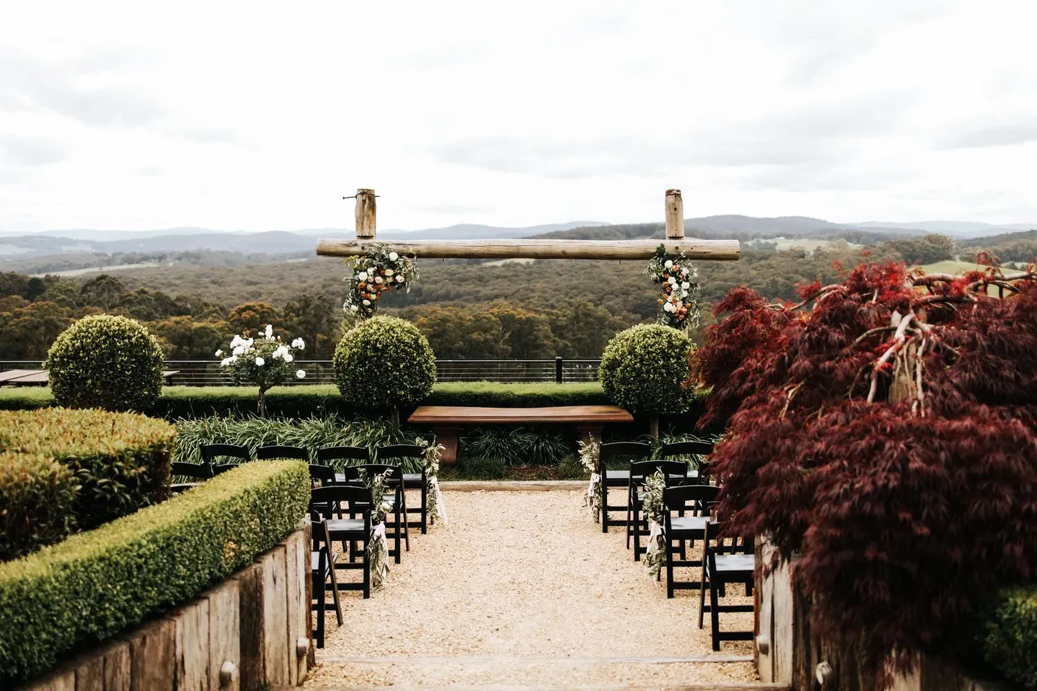 Our terraced garden is a favourite for good reason. Elevated and open to the landscape, it offers a breathtaking ceremony setting with sweeping views and a sense of arrival that feels truly memorable